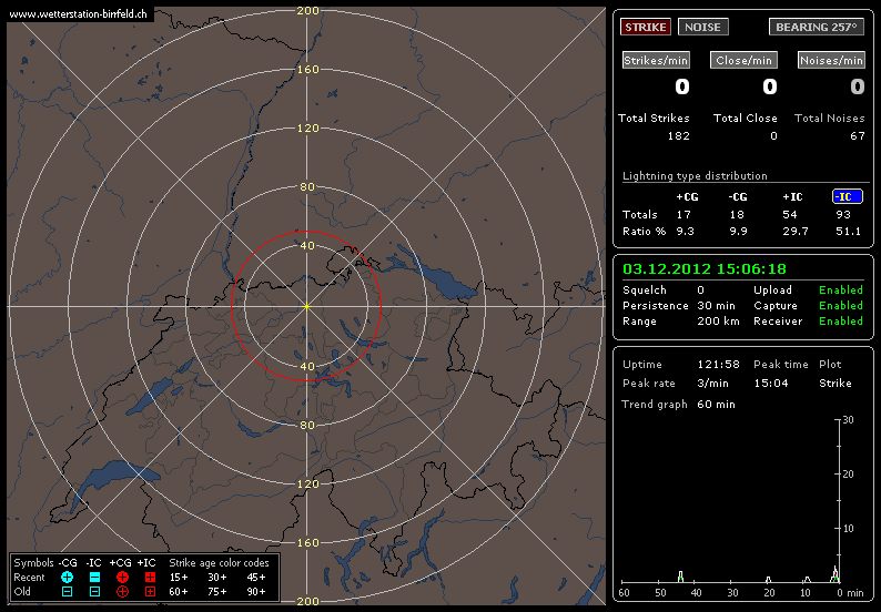 | Weisse Symbole | Blitze älter als 15 Minuten. Nach 30 Minuten werden die Symbole gelöscht |